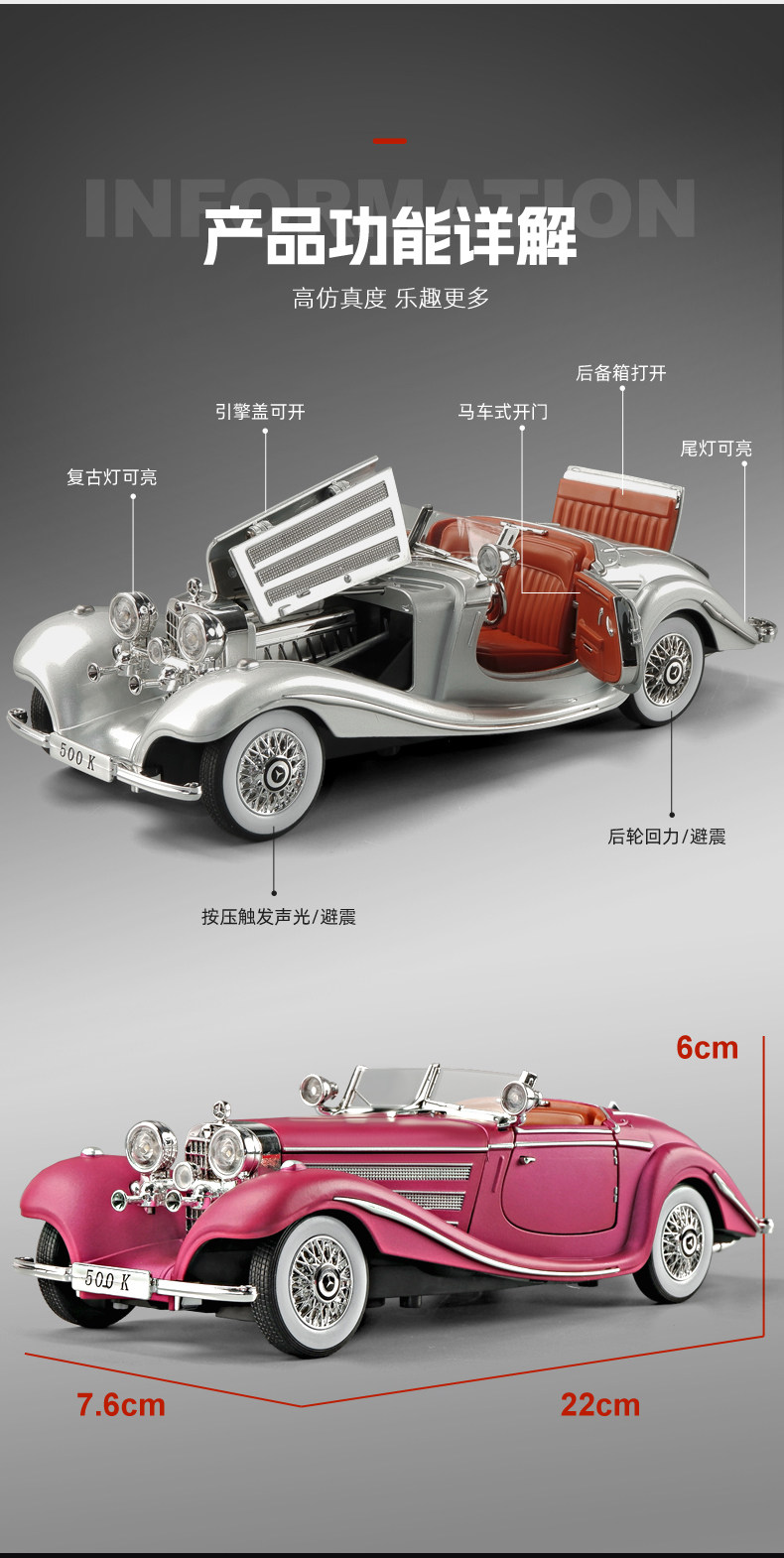 卡威大號仿真合金車模🏎️復古老爺車🚗玩具🎁收藏擺件!